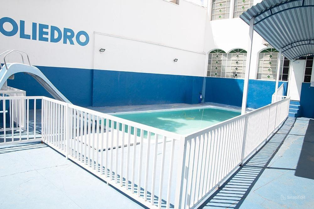 Uma piscina bem cuidada e segura, ideal para aulas de natação, recreação e competições.